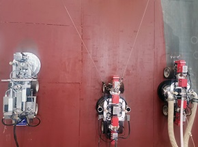 采用爬壁機器人對船舶進行除銹施工,一臺機器人相當于6個工人連續(xù)工作9個小時,有效減少船舶停航時間,機器人本身強大的附壁行走能力,可攜帶120~200 kg重量靈活移動,并具有一定的曲面越障能力,可以使機器人輕松應對船體凹凸不平表面及曲面,實現(xiàn)對船體、船底、船頭、船舷等位置的除銹清洗作業(yè),確保對船體各個部位的徹底除銹。[查看詳情]