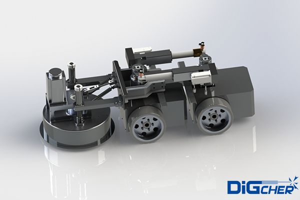 機(jī)器人采用四輪驅(qū)動(dòng),負(fù)載能力強(qiáng),可在在垂直面及天花板面任意行走;電機(jī)驅(qū)動(dòng),具有穩(wěn)定可靠的立面吸附措施;機(jī)器人前端的毛刷盤負(fù)責(zé)清理和回收模板表面的粉塵和殘?jiān)?br />