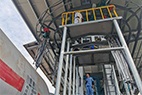 2、三維洗罐器進給機構(gòu)是實現(xiàn)高壓清洗機與罐車口的精準對位,由對位機構(gòu)和內(nèi)架、外架等組成,配有電機功率4 Kw的油站。三維洗罐器進給機構(gòu)布置在罐車軌道安全線外,與鐵路線平行;外支架上安裝有液壓絞車,液壓絞車通過鋼絲帶動對位機構(gòu)上升和下降,對位機構(gòu)的前端有滑塊與高壓清洗機連接滑塊可以前后移動,其運動方向始終與罐車軸線垂直。起升高度2.35m,提升速度可達2 m/min。